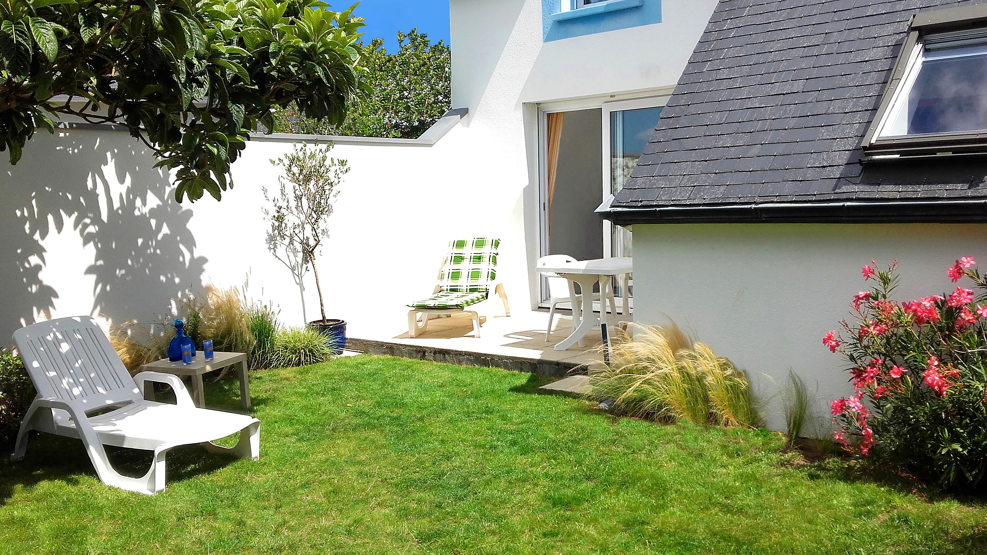 Maison située 11 rue du Goh Lannec à ETEL dans une petite résidence très calme de deux maisons avec terrasse, jardin clos, place privée de parking, cellier extérieur privatif (vélos et poussettes...). Intérieur clair, neuf et contemporain, 4G et WIFI.